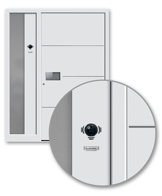 Der Gedanke an ungebetene Gäste vor der Tür bereitet Ihnen Unbehagen? Jetzt nicht mehr. Dank einer elektronischen Überwachung des Eingangsbereiches haben Sie ab sofort alles unter Kontrolle und können sich sicher fühlen. Hinter der attraktiven Tür-Optik steckt modernste Technik in der Türsprechanlage, der Videokamera und der Klingel mit Namensschild. Sobald jemand läutet, erscheint das Bild des Besuchers auf einem Monitor und Sie können aus Ihren sicheren Wänden heraus sofort erkennen, wer vor der Tür steht.